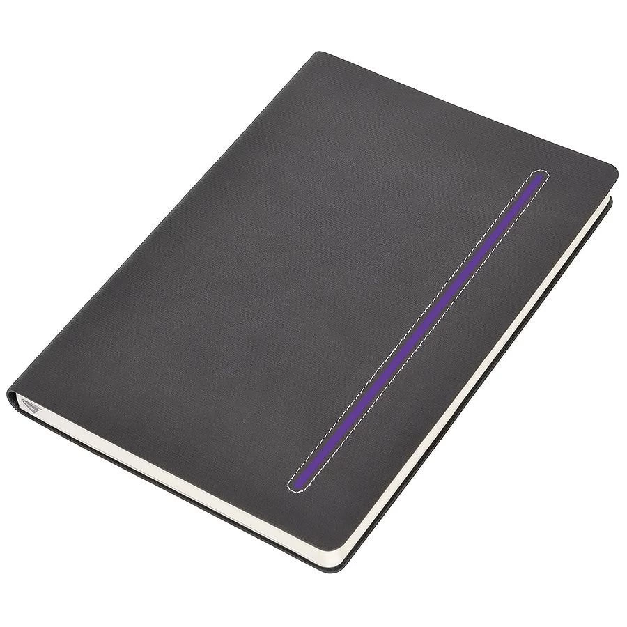 Elegance - блокнот благородного серого цвета с тонкой цветной вставкой, отличается сдержанным шиком и строгостью. Цвет обложки близкий к Pantone 447 С, цветная вставка близкая к Pantone Purple С. Итальянская торговая марка. FSC сертификат. Мягкая термоактивная обложка из материала Catena Черный форзац и стикер для персональной информации. Кремовая бумага блока, 256 стр. В клетку. Перфорация 8 последних листов. Ляссе серебристого цвета Практичные закругленные углы. Надежный прошитый переплет. Упаковка: фирменный слив-бокс