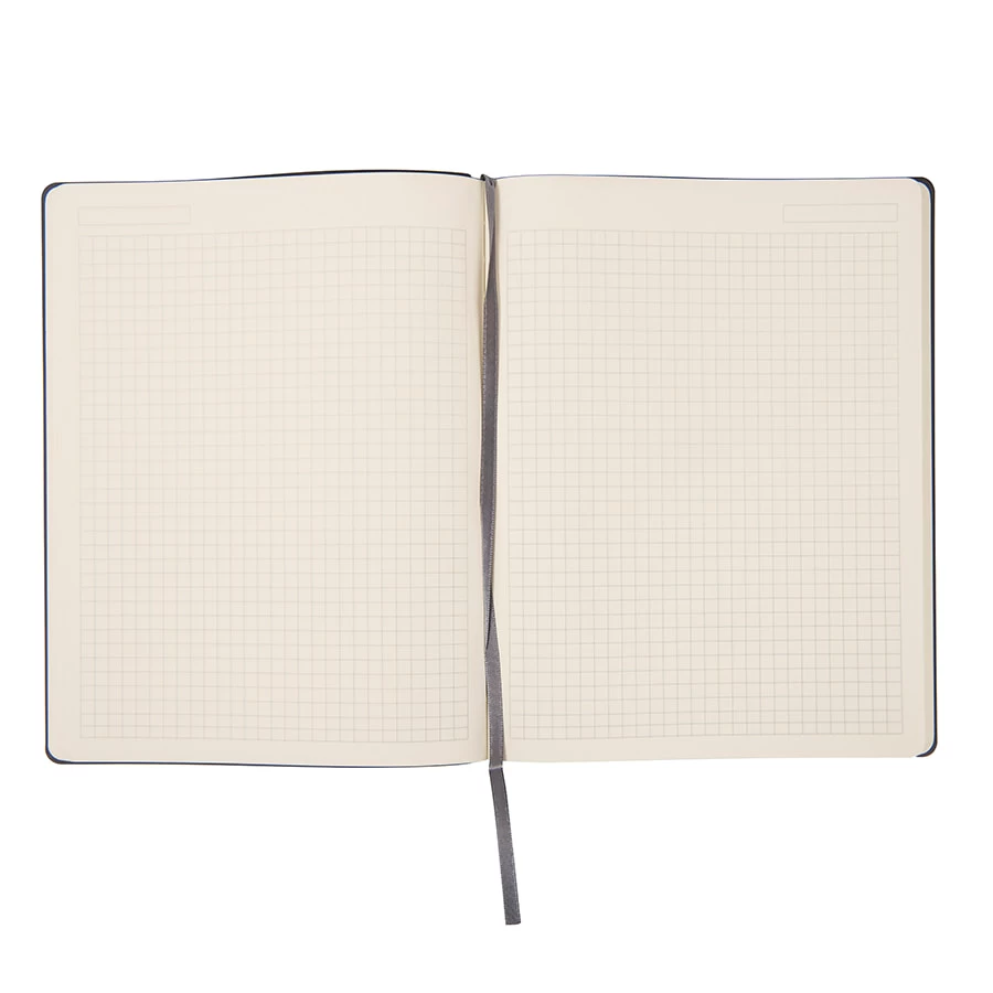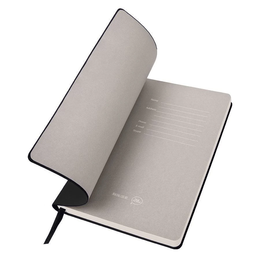 Ультра-модный блокнот формата Ipad-size (B5) Гибкая обложка Термоактивный PU Velvet Plus, на котором не остаются царапины, и при этом мега-приятный на ощупь Пантон, близкий к Black С Цветной форзац близкий к Pantone Cool Gray 5U Кремовая бумага 70 г/м2 FSC сертификат Количество страниц - 256 Блок в клетку Перфорация 8 последних листов Ляссе в тон обложке Практичные закругленные углы Надежный прошитый переплет Упаковка: фирменный слив-бокс