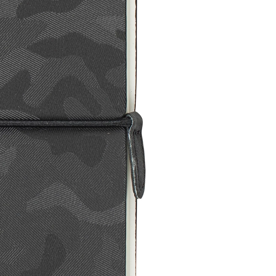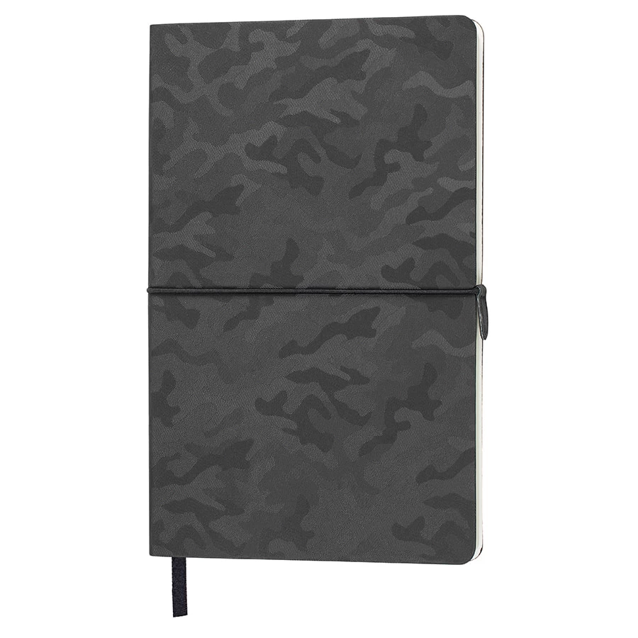 Эксклюзивный ультрамодный блокнот с паттерном камуфляж FSC сертификат Гибкая лицевая термоактивная обложка PU Camou эксклюзивно для thINKme С оборотной стороны - PU обложка Velvet в тон Стильная зигзагообразная прострочка на корешке Круглая эластичная резинка с PU клипом в цвет обложки Пантон, близкий к BlackC Кремовая бумага (блок 70 гр, форзац 160 гр) Блок 256 стр. в клетку Перфорация 8 последних листов. Ляссе в тон обложки. Практичные закругленные углы. Надежный прошитый переплет. Упаковка: фирменный слив-бокс