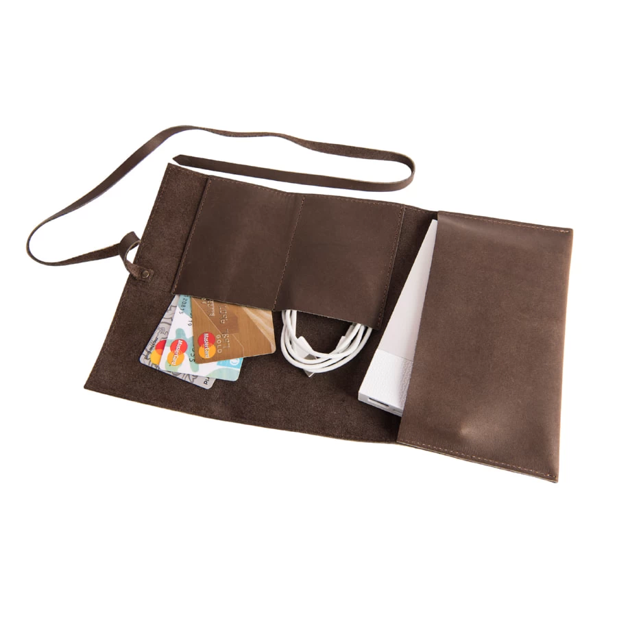 Стильный органайзер из натуральной кожи. Идеально подходит для хранения различных мелочей, зарядных устройств, проводов, наушников, чеков или посадочных талонов в одном месте, незаменимая вещь в путешествиях и командировках.