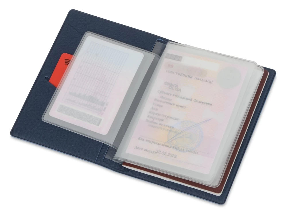 Обложка (портмоне) для документов - это необходимая вещь для любого автовладельца. Качественная обложка сохранит документы в целости, защищая их от изломов, пыли и грязи. Данная обложка из искусственной кожи станет стильным и функциональным аксессуаром. Внутренние вкладыши выполнены из пленки пвх и позволяют разместить: паспорт, свидетельство о регистрации тс, полис осаго, водительское удостоверение, также имеется кармашек для пластиковой карты.