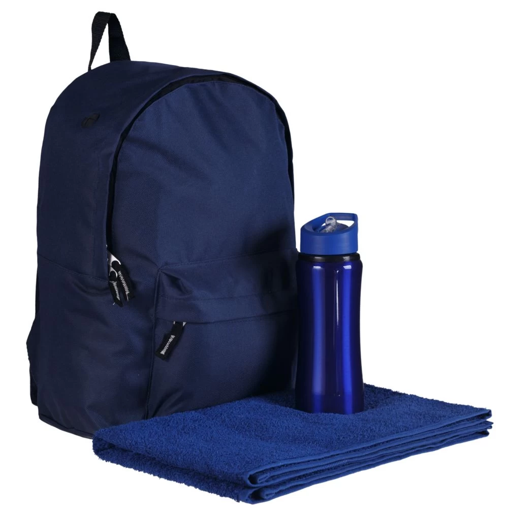 рюкзак - полиэстер, 600 D, бутылка - металл, пластик, полотенце - хлопок 100%, плотность 450 г/м?
