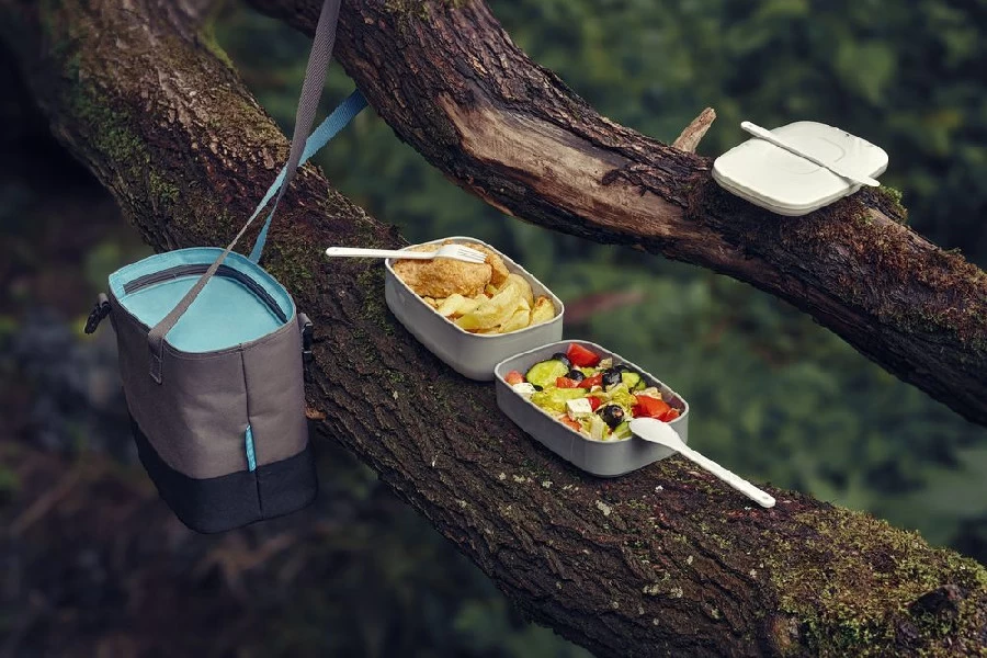 ланчбоксы, приборы - пластик, сумка - полиэстер, термоизоляция