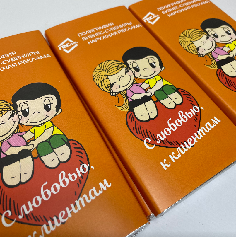 - шоколад 80 г (размер 16×8 см) — от 100 шт.;